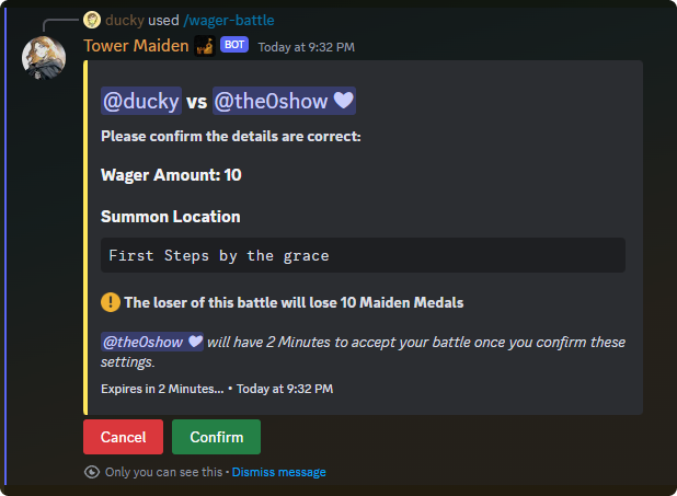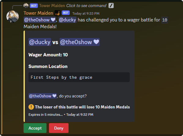 Once you confirm the battle settings, your opponent has to accept the wager battle